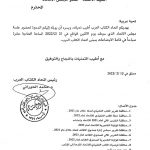أخبار الاتحاد دعوة لحضور المؤتمر السنوي للاتحاد آخر تحديث 2022-02-15 2:44 م تاريخ النشر 2022-02-15 شارك شارك شارك هذا المقال Facebook Whatsapp Whatsapp Email Print السابق العدد (1762) 2/13 /2022 م التالي دعوة لحضور جلسة مجلس الاتحاد تابعنااعثر علينا على الوسائط الاجتماعية FacebookLikeXFollowYoutubeSubscribeTelegramFollow أخبار الاتحاد دمشق | أمسية شعرية بمناسبة يوم الشعر العالمي 2026-04-08 2026-04-08 المرأة في الحياة … لوحة فكرية في محاضرة ثقافية بطرطوس 2026-04-08 ملتقى شعراء الثورة الأول في ادلب…توثيق للعبور إلى ساحات الحرية اتحاد الكتاب العرب هو منظمة شعبية تضم الأدباء السوريين والعرب وتقوم بنشر أعمالهم في كتب ودوريات. تأسس الاتحاد بناءً على المرسوم التشريعي رقم (72) لعام 1969، ويقع مركزه في دمشق. .