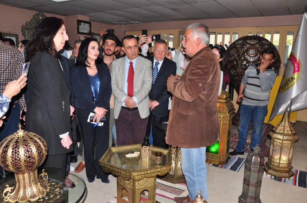 وفي حفل الافتتاح الذي حضره السادة أعضاء المكتب التنفيذي للاتحاد ألقيت مجموعة من الكلمات التي تناولت احتفاء جامعة دمشق هذا العام بالذكرى المئوية الأولى لتأسيسها ونشاطات كلياتها في مختلف فروعها والتي أعطت هذه المئوية طابعها العلمي المميز ليعكس التطور العلمي المتسارع الذي تشهده الجامعة حالياً، ليتم تكريم كوكبة من الأساتذة الأفاضل من أقدم الأساتذة الموجودين على رأس عملهم في أقسام كلية الآداب ممن تميزوا بعملهم وتفوقوا ببحثهم العلمي، وهم أستاذ الفكر السياسي وصاحب المؤلفات التي تصب في الأدب السياسي والفلسفي والاجتماعي الدكتور سليم ناصر بركات، والدكتورة في علم الاجتماع ليلى خليل داوود والدكتور الذي قضى الشطر الأكبر من حياته بالتعليم والتأريخ محمد قاسم محمد الزين ودكتور اللغة العربية مزيد إسماعيل نعيم والدكتور ممدوح نقولا أبو الوي الذي قدم الأدب الروسي للجامعات السورية، سواء عبر التدريس أو التأليف، والدكتور أمين خالد طربوش والدكتور منصور نجم حذيفي الحاصل على الوسام الأكاديمي برتبة فارس من فرنسا والدكتور محمد شعلان طيار من مؤسسي قسم الآثار الأوائل، ورئيس القسم لأكثر من عشرين عاماً، والدكتور عبد المجيد عبود مهنا أقدم أساتذة علم المكتبات، إضافة إلى تكريم الفنانة سلاف فواخرجي التي قدمت حفل الافتتاح كونها طالبة دراسات عليا في قسم الآثار.