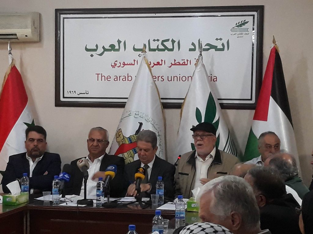 كما أكد د. محمد الحوراني رئيس اتحاد الكتاب العرب عن سعادته بأن يحتضن مبنى الاتحاد هذه الفعالية التي تعني الشيء الكثير لكل شريف ينتصر للقضية الفلسطينية، مؤكداً فشل المشروع الصهيوني المجرم ومحاولات تغييب هذه القضية عن وجدان أبناء الأمة، وفشل محاولات التطبيع مع هذا الاحتلال المتوحش.