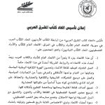 كما تم الإعلان عن تأسيس اتحاد كتّاب المشرق العربي الذي يضم (رابطة الكتاب الأردنيين- اتحاد الكتاب العرب في سورية- الاتحاد العام للأدباء والكتاب في العراق- الاتحاد العام للكتاب والأدباء الفلسطينيين- اتحاد الكتاب اللبنانيين)، الذي يعد جزءاً لا يتجزأ من الاتحاد العام للأدباء والكتاب العرب، والذي يسعى لتوطيد ثقافة الانتماء وتحصين الهوية الثقافية الوطنية الجامعة وتمكينها من القيام بواجبها الأخلاقي والمعرفي بعيداً عن التجاذبات السياسية وتعميق أهداف ثقافة المقاومة ومعانيها ومناهضة التطبيع وترسيخ حضور القضية الفلسطينية في الثقافة والآداب والفنون.