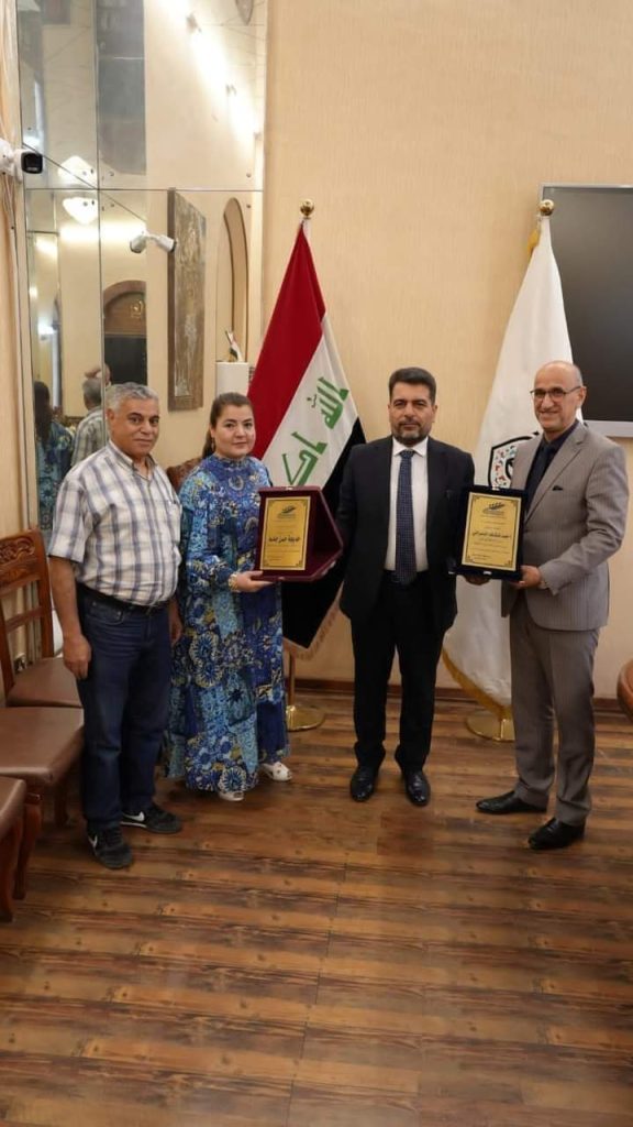 بهذه المناسبة قدّم الدكتور الحوراني باسم اتحاد الكتاب العرب في سورية درعاً تكريمياً لوزير الثقافة العراقي وتسلمه الدكتور عبد الباقي بدر ناصر الخزرجي عضو مجلس أمناء بيت الحكمة، ودرعاً تكريمياً آخر للدكتورة خديجة حسن جاسم مديرة قسم الدراسات الاجتماعية في بيت الحكمة، تقديراً لجهودها في تعزيز التعاون بين اتحاد الكتاب العرب ومؤسسة بيت الحكمة في العراق، والذي سيتوّج بمؤتمر علمي بمشاركة اتحاد الكتاب في سورية قبل نهاية العام الحالي.