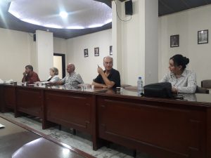 نوقش خلال الجلسة عددٌ من الموضوعات التنظيمية المتعلقة بالنشاطات، حيث تمت الدعوة لإقامة نشاط في المركز الثقافي بأبي رمانة تحت عنوان (قصة المقاومة)، وعُرضت أفكار جديدة من الممكن العمل عليها مثل زيارة الجرحى والنازحين في لبنان، وزيارة المسنين، وإقامة ندوات شبابية، وفي موضوع الهوية قدّم مقرّر الجمعية أ. عماد نداف ورقة عمل بعنوان (الهوية والإبداع) ركّز خلالها على مسؤولية الكاتب في تحديد هوية الكتابة الإبداعية التي يعمل عليها وخاصة أن الثقافة العربية هي المآل الأول والأخير الذي يجمع بين أبناء العروبة، تلاها ورقة ثانية لأمين سر الجمعية أ. غسان حورانية بعنوان (الهوية في القصة والرواية) طرح فيها تساؤلات مهمة حول الهوية، منها ماذا نقول عن هوية أدب كاتب يجيد عدّة لغات ويكتب بكل لغة رواية؟ وهل علينا أن نغفل دور اللغة التي تكتب بها القصة أو الرواية؟ وهل ولادة أحد الكتاب في أمريكا مثلا يجعله كاتباً أمريكياً؟ وغير ذلك الكثير.