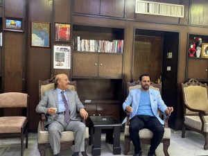 في إطار تعزيز دور الاتحاد الثقافي والاجتماعي التقى رئيس اتحاد الكتّاب العرب محمد طه العثمان وأعضاء من المكتب التنفيذي بسعادة سفير دولة البحرين في سورية وحيد مبارك سيار ، الذي قام بزيارة للاتحاد في مقره الرئيس باتوتستراد المزة .