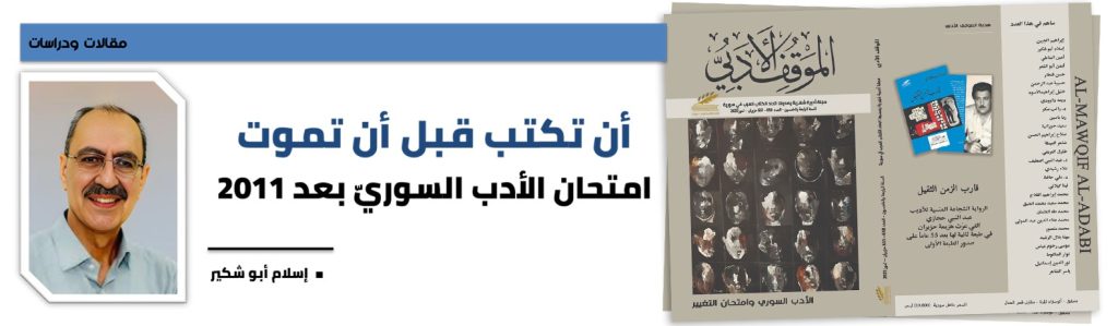 والواقع أنّ التحوّل الذي انطلقتْ شرارتُه عام 2011، بما حمله من عنفٍ غير مسبوق، وبما فتحه في الوقت نفسه من آفاقٍ لتوقّعاتٍ وآمالٍ بدت مستحيلةً على الدوام، قد وضع التجربة الأدبيّة السوريّة أمام امتحانٍ جديدٍ ومعقّد. فهي مطالبةٌ من جهةٍ بمواكبة الحدث الصاخب المتسارع وتوثيقه، كما يحدث في كلّ منعطفٍ كبيرٍ، ومطالبةٌ في الوقت نفسه بألّا تخسر توهّجها الإبداعيّ، أو تُسقِط البُعد الفنّيّ الذي راكمتْه عبر المراحل السابقة، وبات رصيداً يُحسَب لها؛ لصالح تعبيرٍ مرتجَلٍ تبدأ دورة حياته بانطلاق الحدث، وتنتهي بانتهائه.