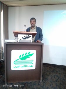 شرح المدرب الأستاذ أيمن الحسن خلال الورشة عن فنون القصة العربية منذ العصر القديم حتى عصر الحداثة وعرّف السرد وعدد أشكاله (الحكاية، الخبر، اليوميات).